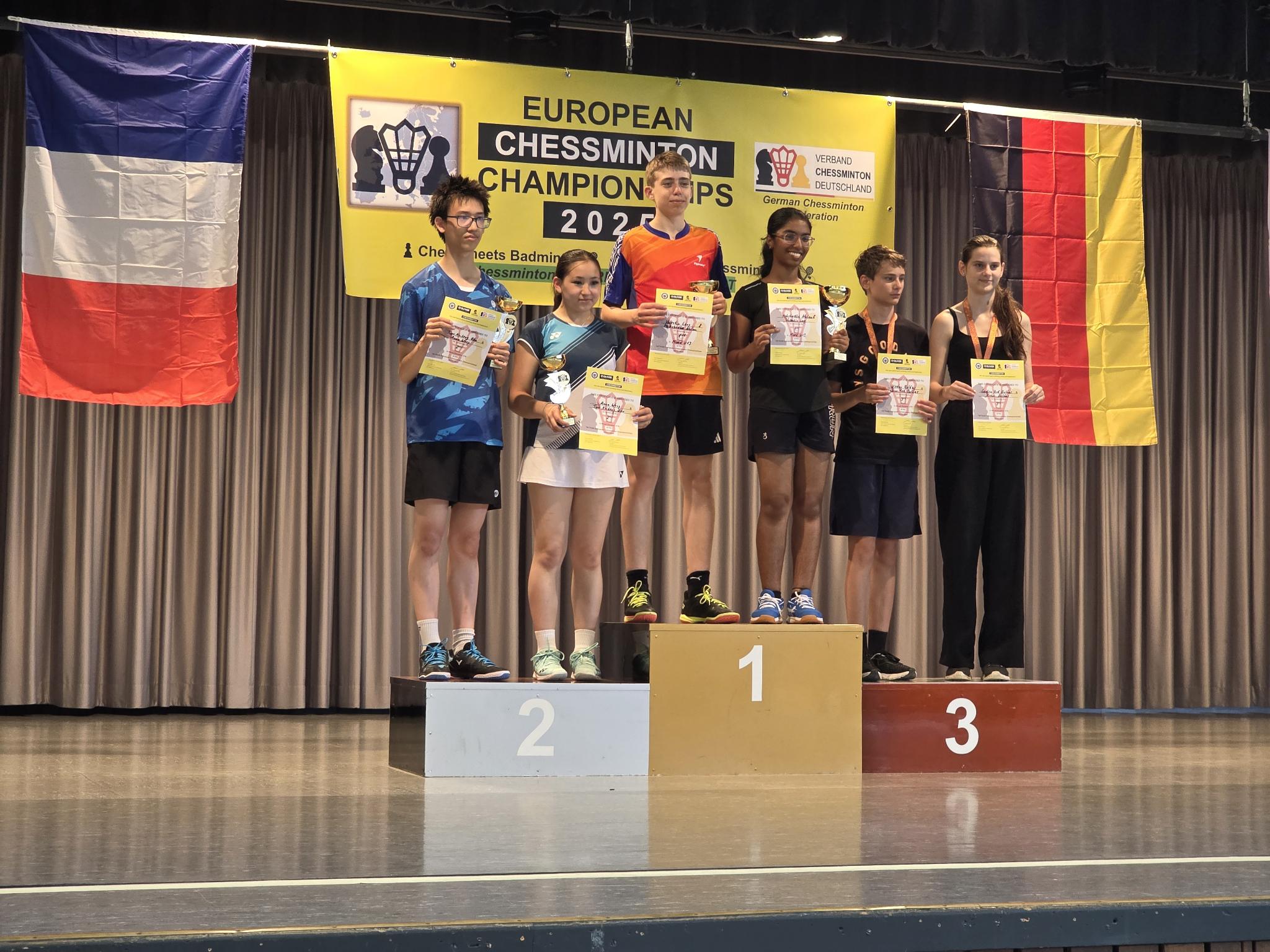57 young players from four different European countries (Germany, France, Hungary, Luxembourg) competed in 12 events, and played a total of 148 Chessminton matches on one day.